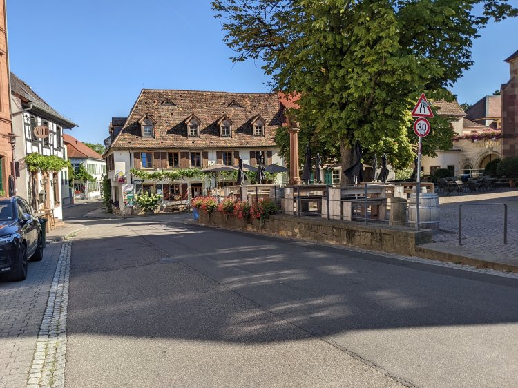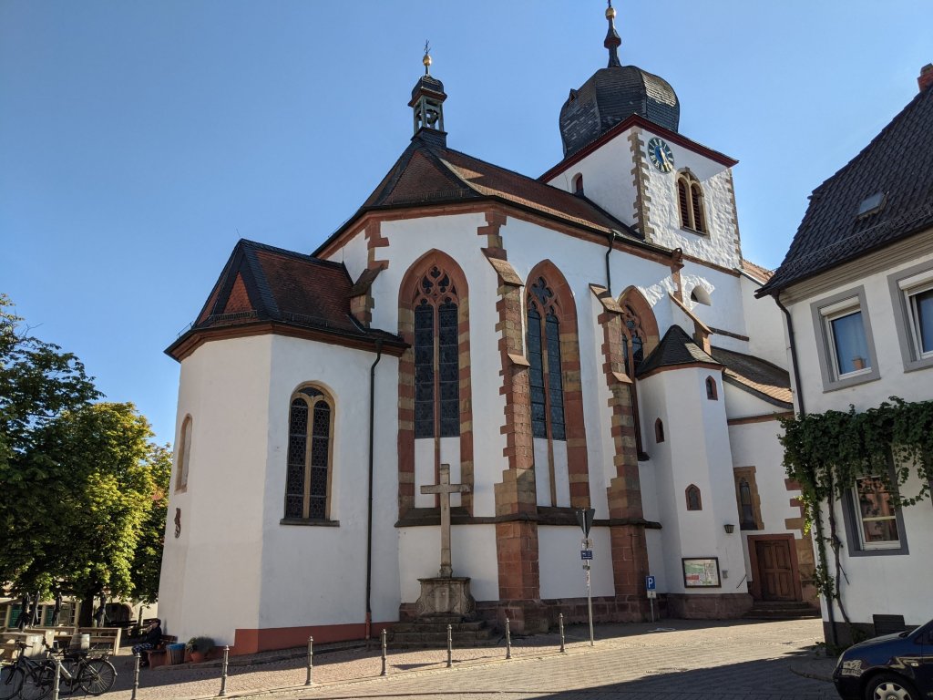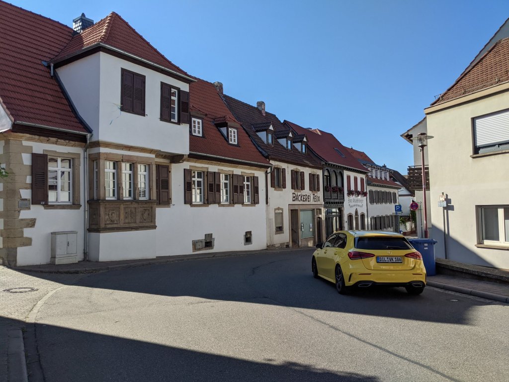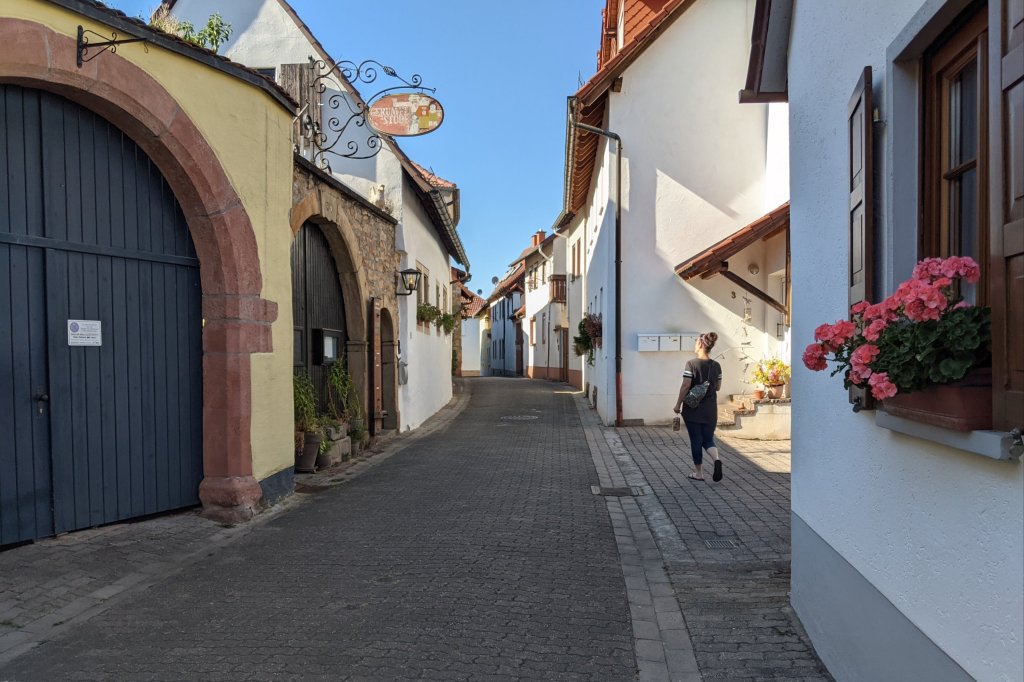 Wachenheim’s location in Southwest Germany.St. George Church. Apparently, in 1707, the church was partitioned, the nave was given to the Protestants and the chancel was given to the Catholics. Interesting, rather than forcing individuals of either tradition to submit to the decree of the ruler (which is what often happened in German-speaking lands at the time).The inside of the little church. It’s very possible that this is very church my husband’s ancestors would have attended. All the wood in the upper left hand corner would have been hand carved by a master craftsman. I happened to see a post by this master craftsman’s descendant on Instagram, and that is how I learned the facts above. Social media is good for some things!Idyllic little German street.The Schloss Wachenheim. A historic winery and the only place that was open in the middle of the afternoon on a Monday. Excellent Flammkuchen!If you look at the center of the picture, far to the back, you will see some beach chairs, there for people to relax in the afternoon sunshine and enjoy a glass of local wine.We ordered one sweet, and one savory Flammkuchen. Both were quickly devoured.Do not dream {away} your life, live your dream!Leaving the restaurant Wandeln….A pretty garden gateMehr wandeln…Cruising through the rest of the town before continuing our journey 🚗