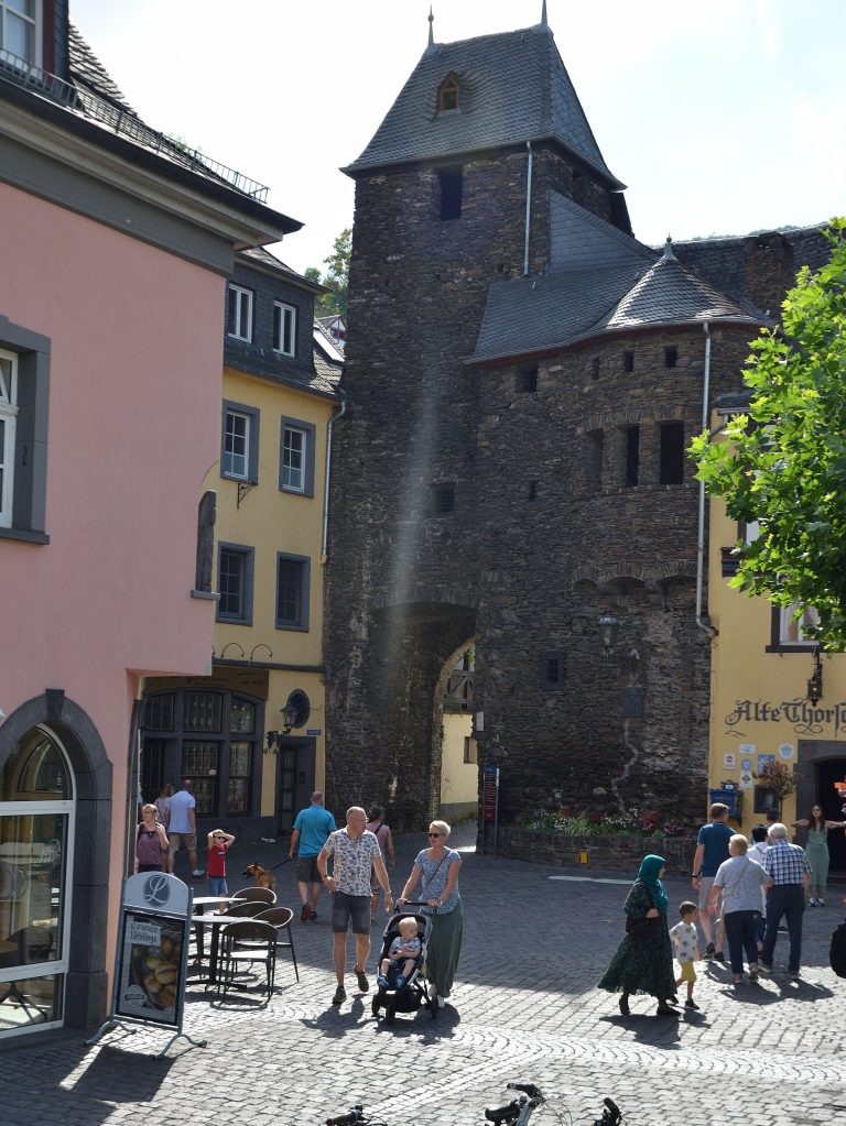 Still, I was so taken with it that it needed to play a role in the series somehow. When I arrived in Cochem this summer, the pictures simply hadn’t done it justice. (They never do!) We found a charming town that evoked memories of the Middle Ages. Some of the original city walls still stand, and the gate dates back to the 1300’s.