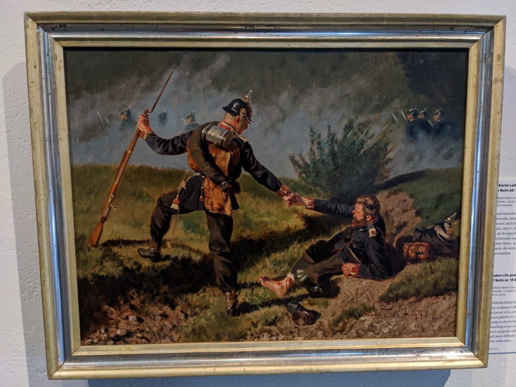 The Battle of Waterloo in the Prussians’ heroic moment.A wounded comrade.A young fusilier. I just thought he was cute! I really can’t imagine wearing a hat like that into battle, though.Verdun. The Last of the Company.