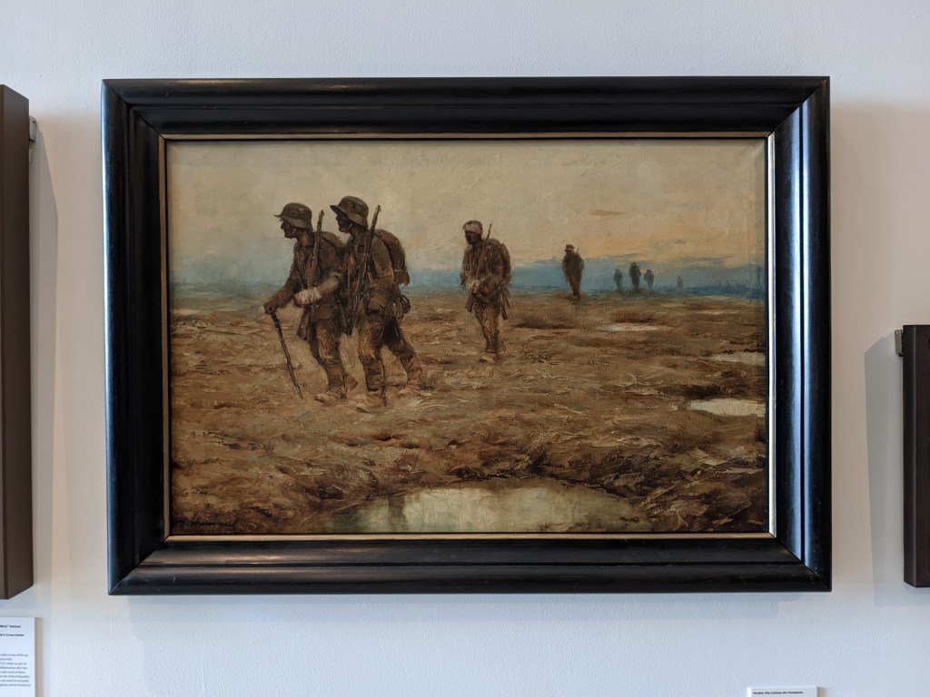 Though located in a different room of the gallery, I include this collection here because it is thought provoking when considered alongside the painting above. These photos were all taken of soldiers before they departed for the front. Those who left in 1914 and 1915 were full of nationalistic fervor, believing what they’d been told: that they were going to fight a defensive war. Those who were drafted later in the war reveal a much more somber state of mind.