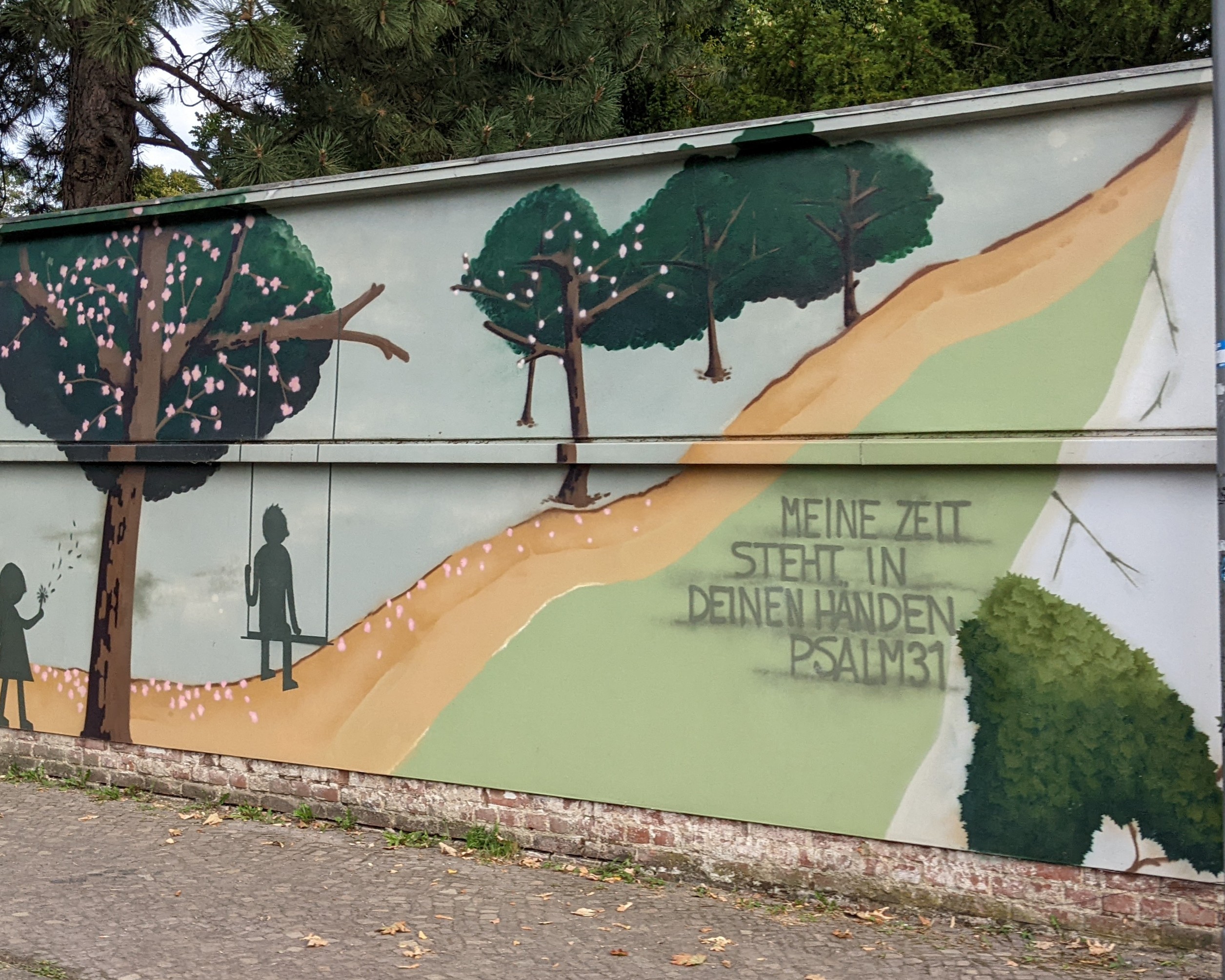 Driving in to Leipzig, we were greeted by a mural with four scripture verses painted on it. This is one of my favorites, because it was always so precious to my mom: