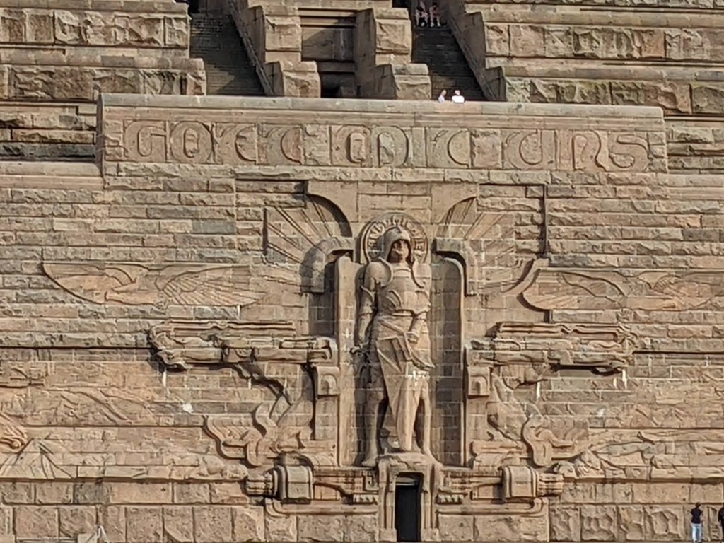 The slogan God With Us, carved above St. Michael the Archangel, who is the patron and protector of soldiers. Also, another proof of the sheer size of this monument: note the person in the bottom right hand corner.