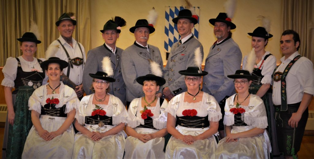 And here is a photo of my club from our Spring Dance this year. We have two local clubs, and because the number of dancers in both groups has diminished over the years, both clubs dance together. Some of our members belong to the other group as well, so here you see Tracht from both clubs represented.