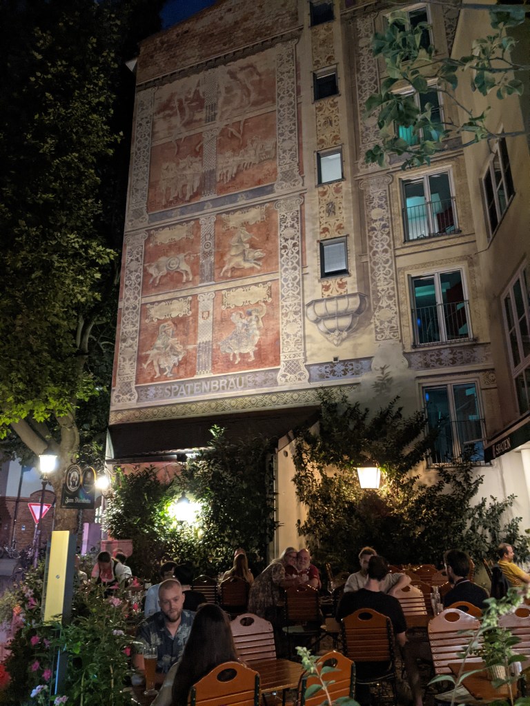 After settling into our hotel the first evening, we wandered around a bit. Tucked away in a corner, we found Zum Dürnbräu, a place with a 500-year history and the perfect spot to enjoy a meal on a warm night in August.