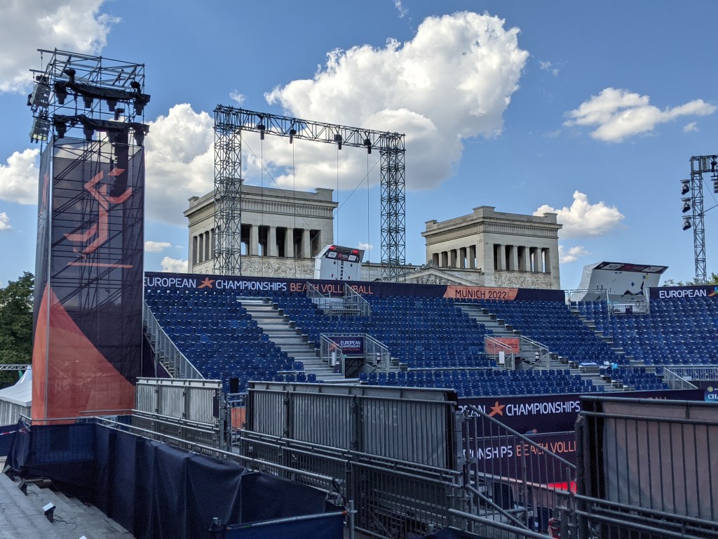 We have a penchant for making it to major German cities while they are preparing for a major sporting event. In 2017 we couldn’t enjoy the market in Nuremberg because of a beach volleyball tournament. Here in 2022, the Munich Königsplatz is all ready to host the European Sports Championship (including, you guessed it, beach volleyball!)