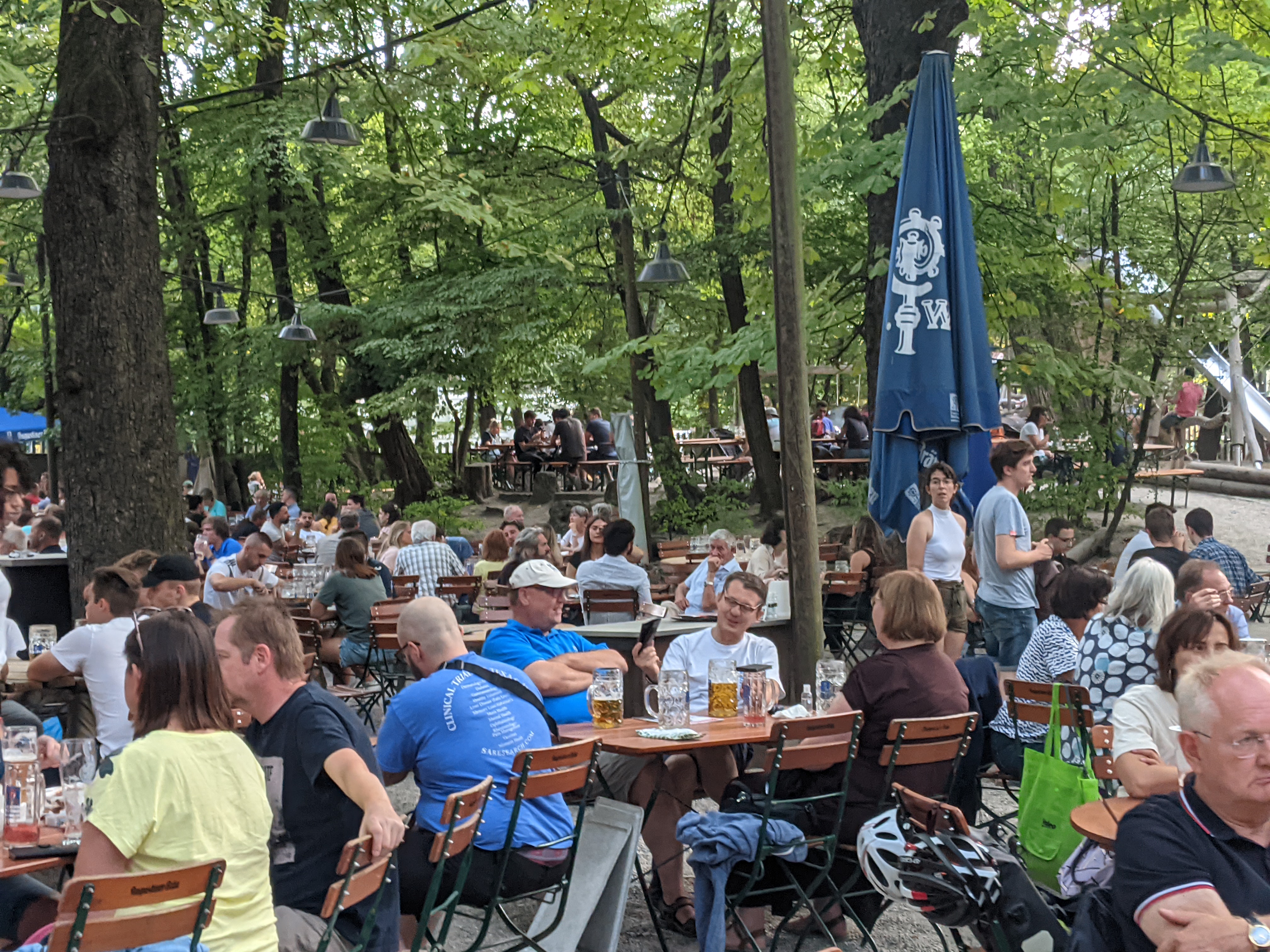It was a 36 minute walk… and well worth it! If you want to experience the feel of a German Biergarten in the summer, this is the place to do it. A large, lovely, wooded setting with table service close to the kitchen and counter service for those farther out. Plus, there is a huge playground on-site.
