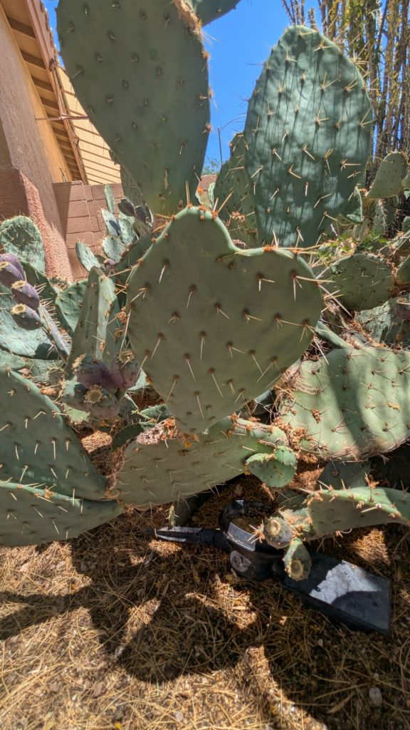 My daddy and his wife have made a nice home out here, complete with a front yard rock-and-cactus garden. My father says he collected rocks over years of walking the dogs in the river bed–and that only a few months a year, December through February. After that there is too great a risk of rattle snakes.